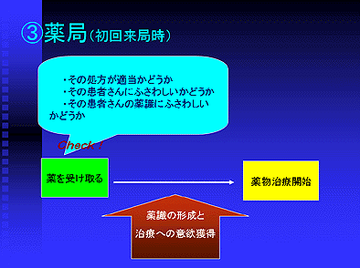 そして患者さんは薬局においでになります。薬局において患者さんは実際に薬を受け取り、実感を持ってこれから取り組む薬物治療と向かい合うことになるのです。