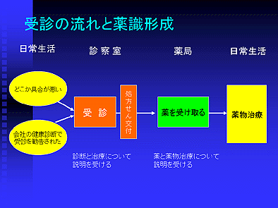 それでは、患者さんが外来にて診察を受け薬物治療を開始するそれぞれの段階において、どのように薬識が形成され、そこに薬剤師がどのように関わることによって、Patient Orientedな薬物治療を成功に導くことができるかを考えてみたいと思います。